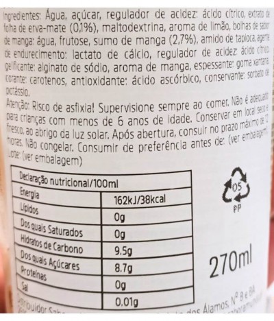 OMG Bubble Tea Limão e Manga. Refrigerante com sabor a limão com extrato de chá de erva-mate e bolhas com sabor a manga.