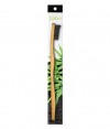 Escova de dentes com cerdas Dupont Tynex 612 Nylon sem BPA em forma crescente para chegar aos pontos mais difíceis. Cabo ergonómico em bambú 100% biodegradável.